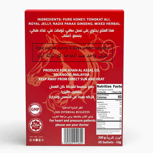 AR&R Organic Honey with Natural Jelly Bee Pollen - Large Pack 20 Sachets